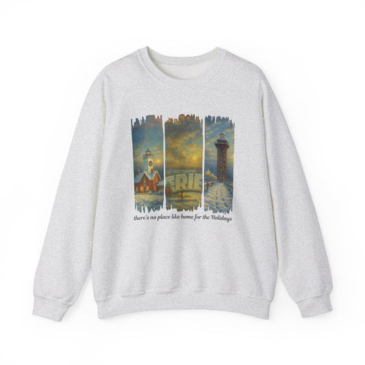 Erie Christmas Sweatshirt, There’s No Place Like Home for the Holidays, Erie PA Holiday Crewneck, Cozy Winter Gildan 18000 (Show Special)