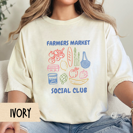 Farmers Market Social Club Shirt, Comfort Colors Foodie Tee, Cute Grocery Graphic Top, Local Produce Club T-Shirt, Farm Fresh Aesthetic