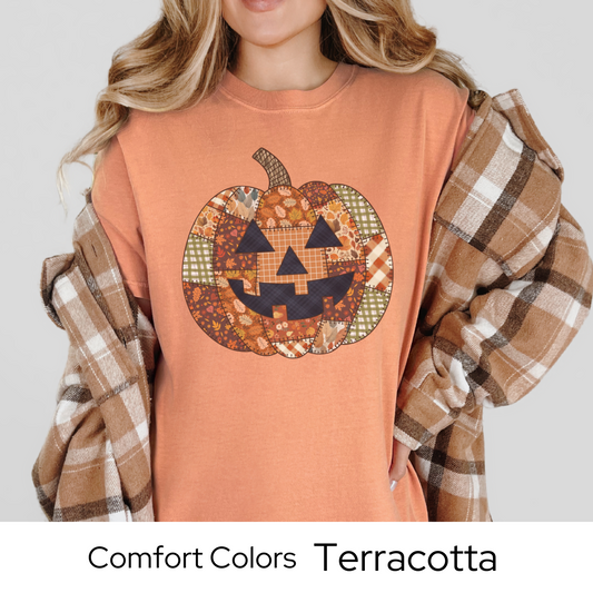 Halloween Shirt, Fall Pumpkin Shirt, Jack O Lantern Tee, Comfort Colors Halloween, Patchwork Pumpkin Shirt, Fall Graphic Tee, Cute Fall