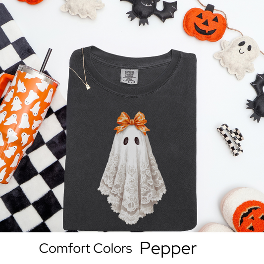 Halloween Ghost Shirt, Lace Ghost Tee, Vintage Halloween T-Shirt, Fall Comfort Colors Shirt, Spooky Season Top for Women