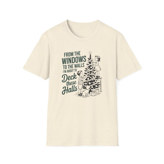 Funny Christmas Shirt, Retro Holiday T-Shirt, Deck These Halls Tee, Vintage Christmas Humor, Holiday Party Gift, Gildan 6400 (Show Special)