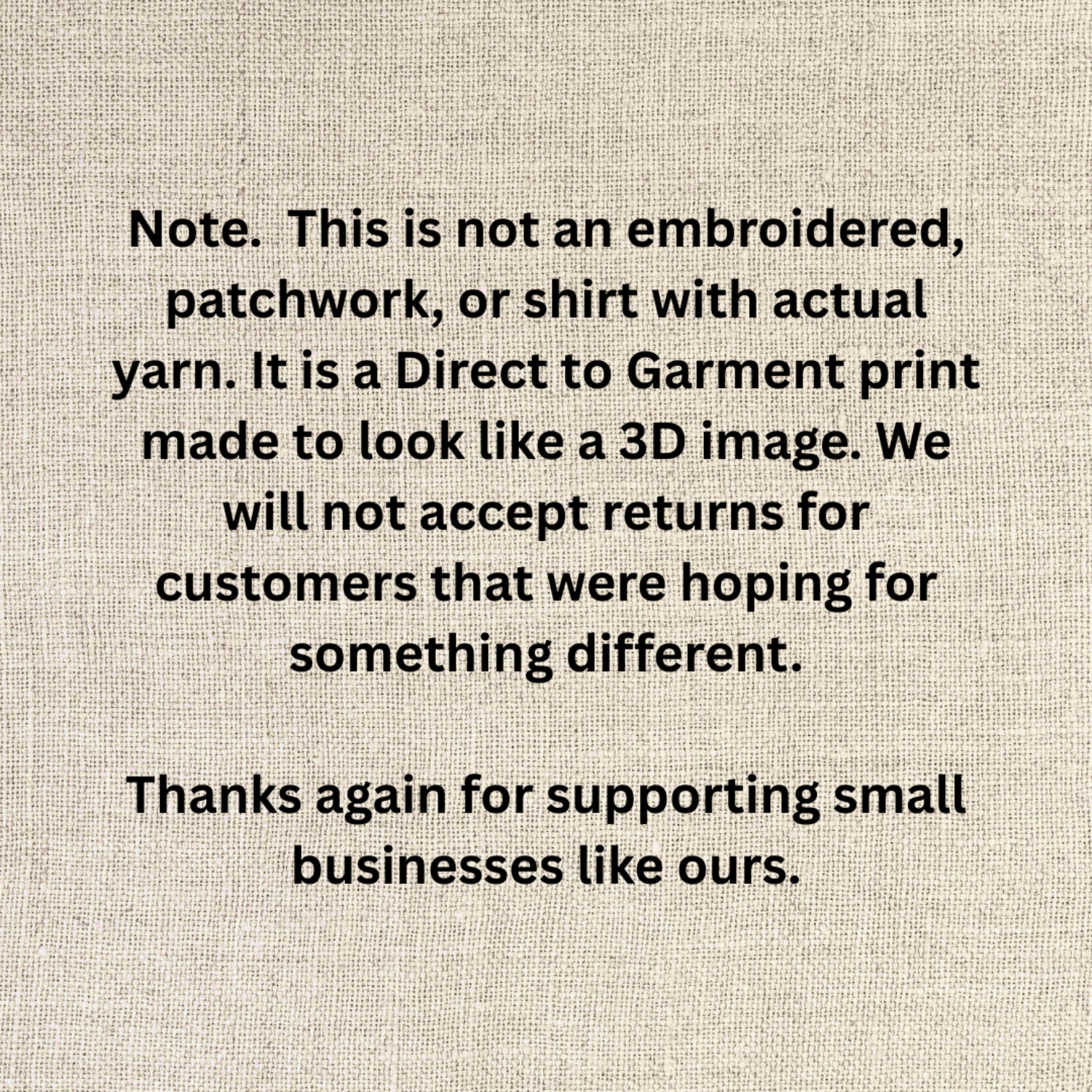 Add some farmhouse fun to your holidays with this adorable Christmas chickens sweatshirt! Featuring three festive hens in scarves and Santa hats, this cozy crewneck has the look of hand-stitched latchhook art—but it’s printed using Direct-to-Garment (DTG) technology for a smooth, soft finish. The faux yarn design gives it that handmade charm without the texture. Please note: this is a faux yarn print, not a real 3D or latchhook design.
