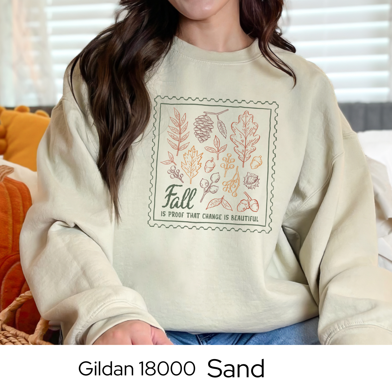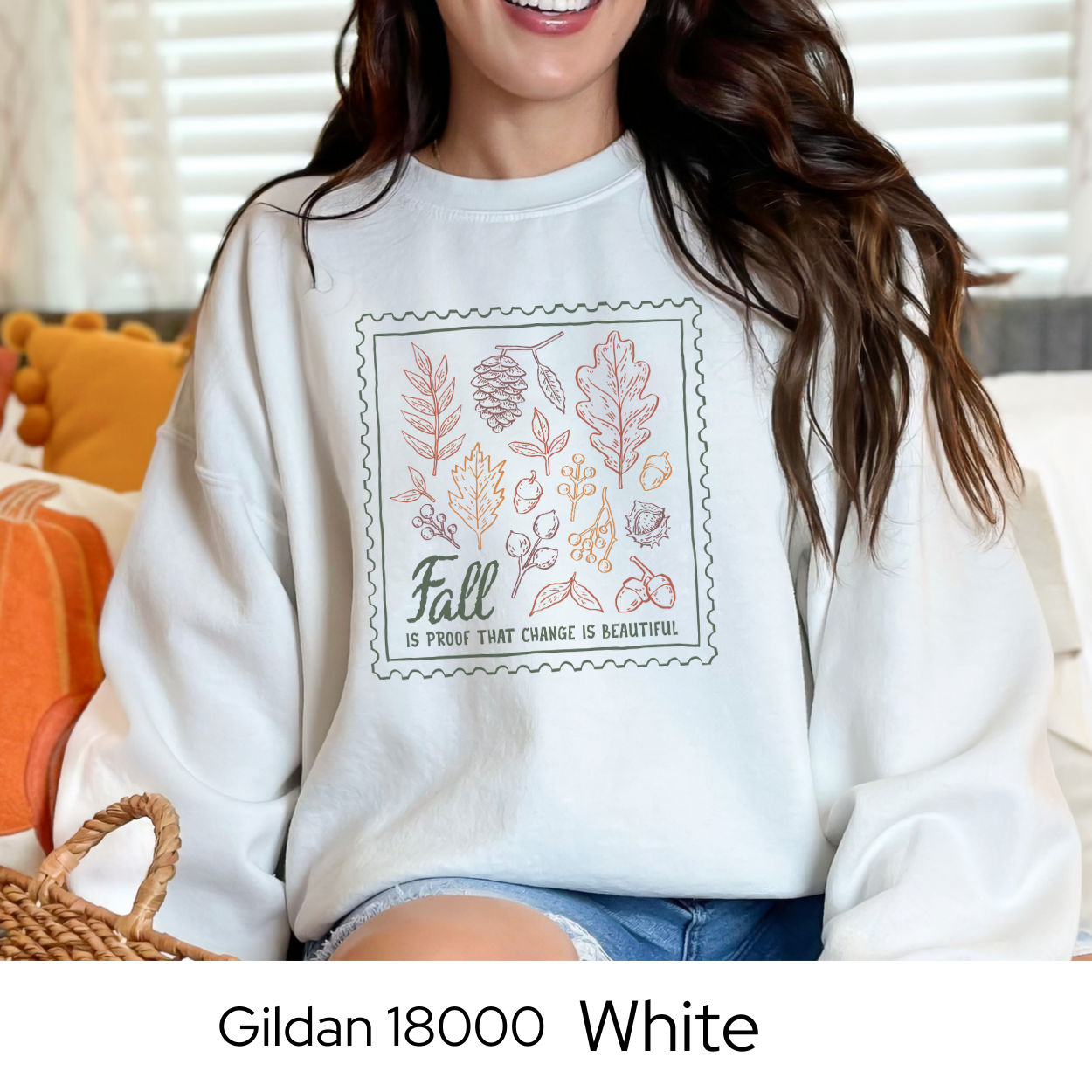 Fall Crewneck Sweatshirt, Autumn Leaves Pullover, Cozy Fall Aesthetic Sweater, Gildan 18000 Crew, Gift for Her, Teacher Fall Sweatshirt