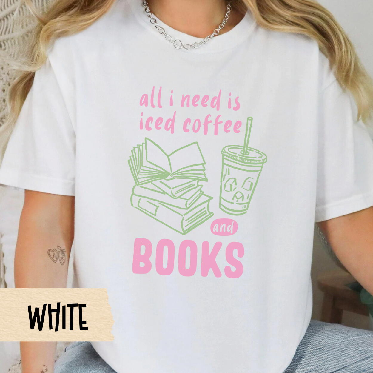 iced coffee and books t-shirt for girls, pink and green bookish aesthetic tee, comfort colors reader shirt, casual lifestyle reader top