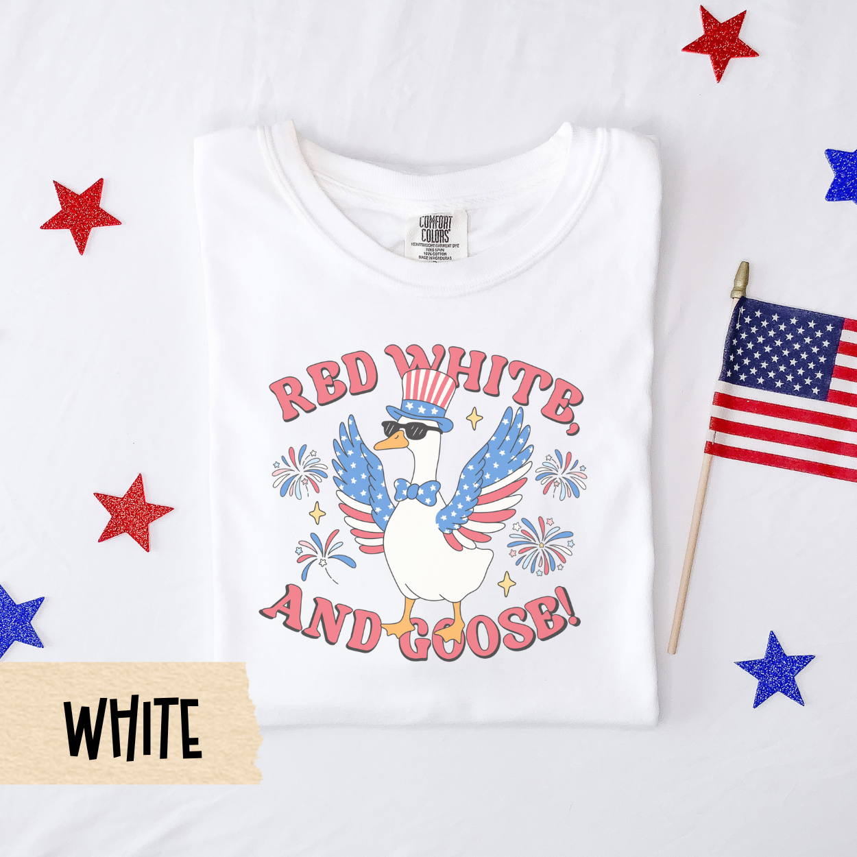 Red white and goose shirt, patriotic goose tee, funny 4th of July shirt, comfort colors tee, USA graphic tee, silly summer shirt, July 4