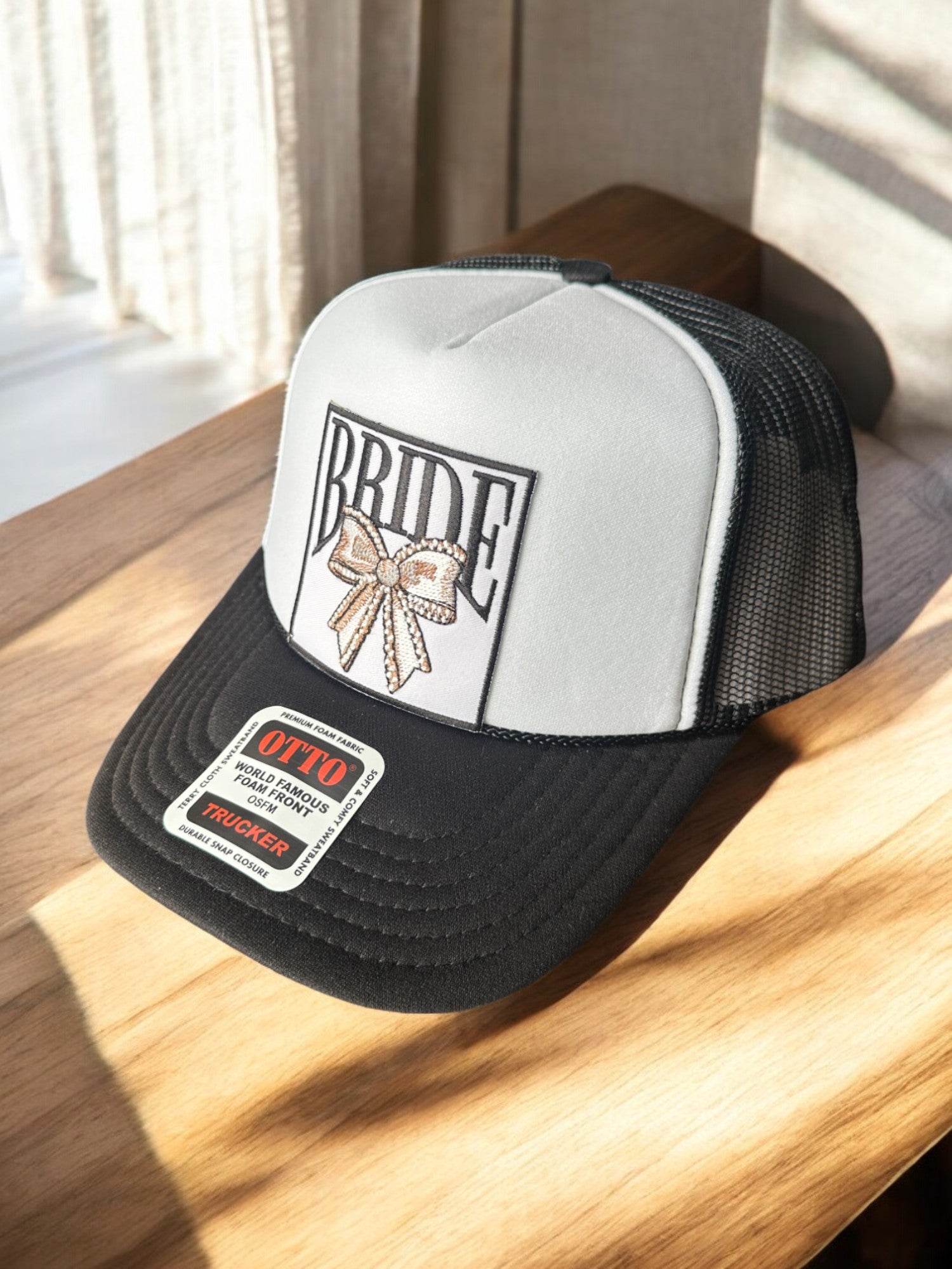 White & Black "Bride" Foam Trucker Hat with Big Bow – Classic & Chic Bachelorette Hat