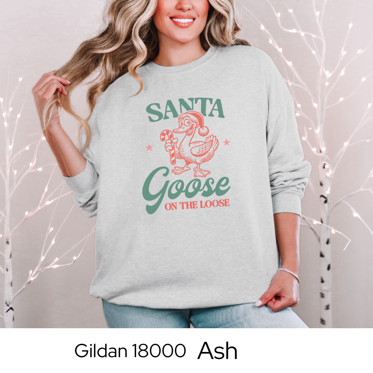 Funny Christmas Sweatshirt, Santa Goose Holiday Crewneck, Cozy Gildan 18000 Pullover, Christmas Humor Sweater, Gift Idea for Women