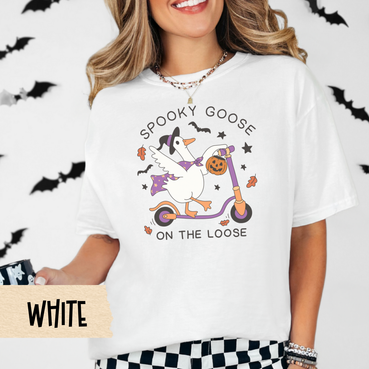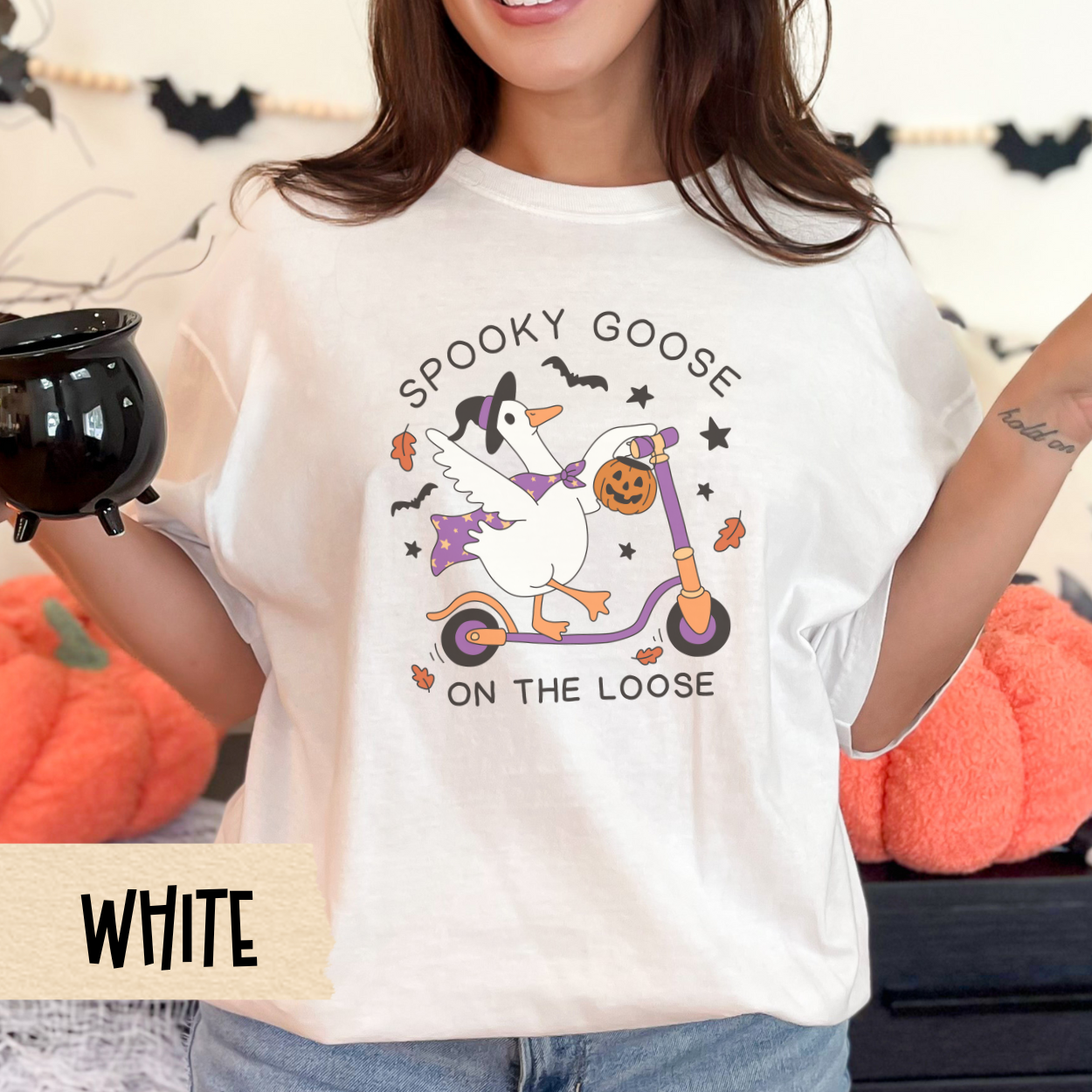 Funny Halloween Goose T-Shirt, Spooky Goose on the Loose, Witch Duck Fall Tee, Cute Comfort Colors Shirt, Scooter Pumpkin Graphic Tee