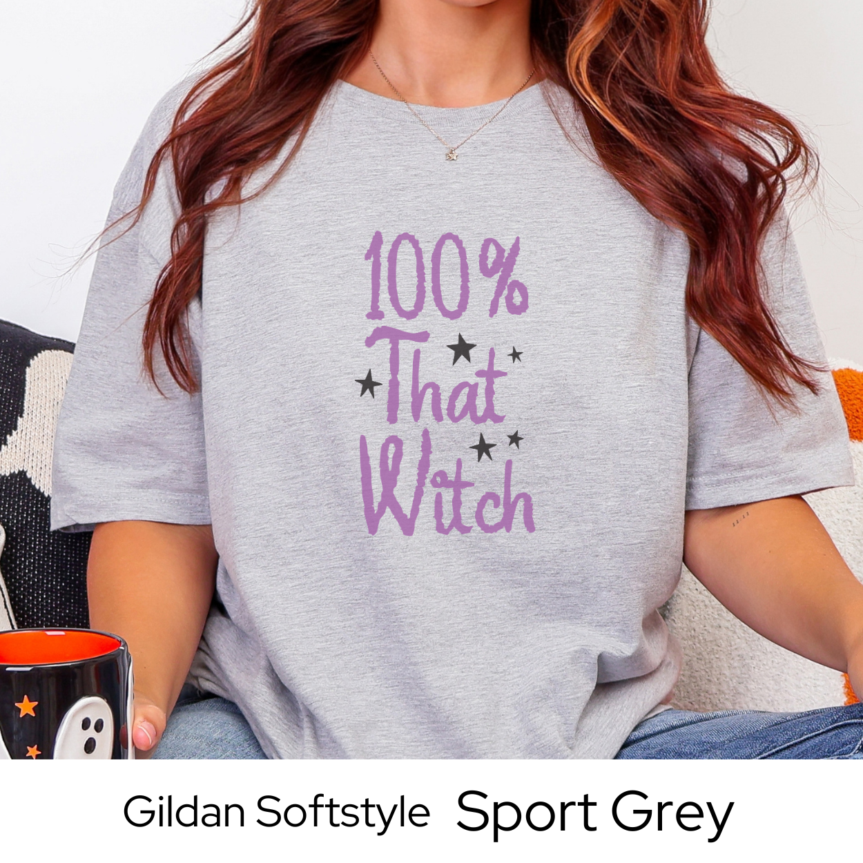 Funny Halloween Shirt for Women, 100% That Witch Graphic Tee, Trendy Fall Top, Sassy Spooky Season Shirt for Cute Witchy Vibes