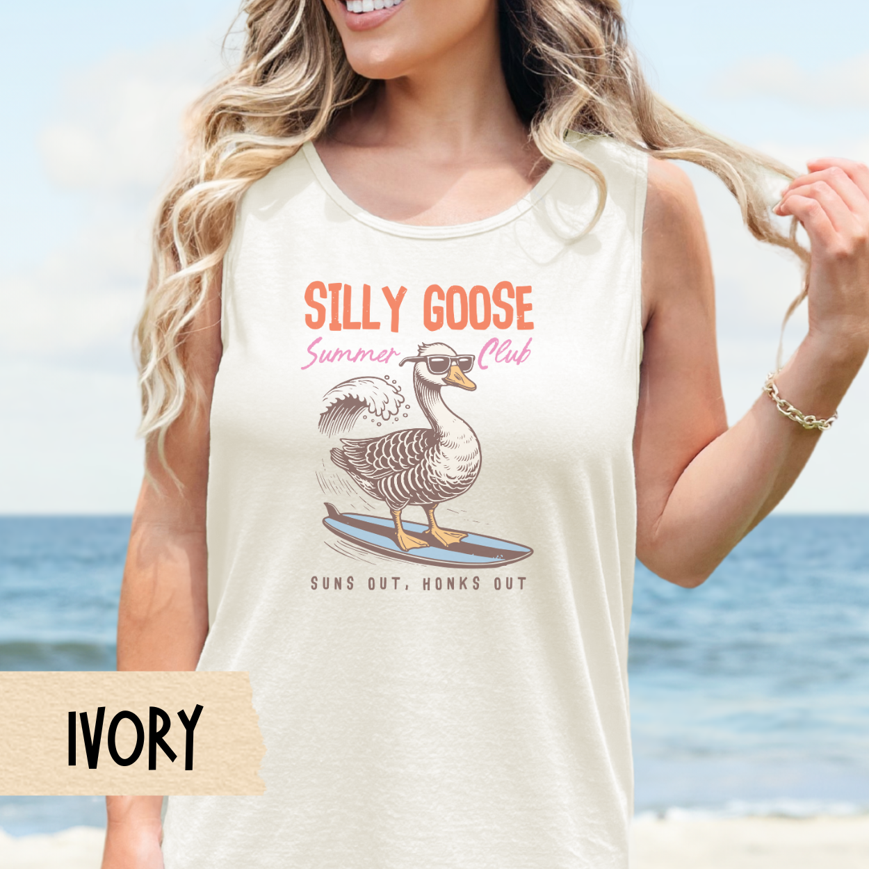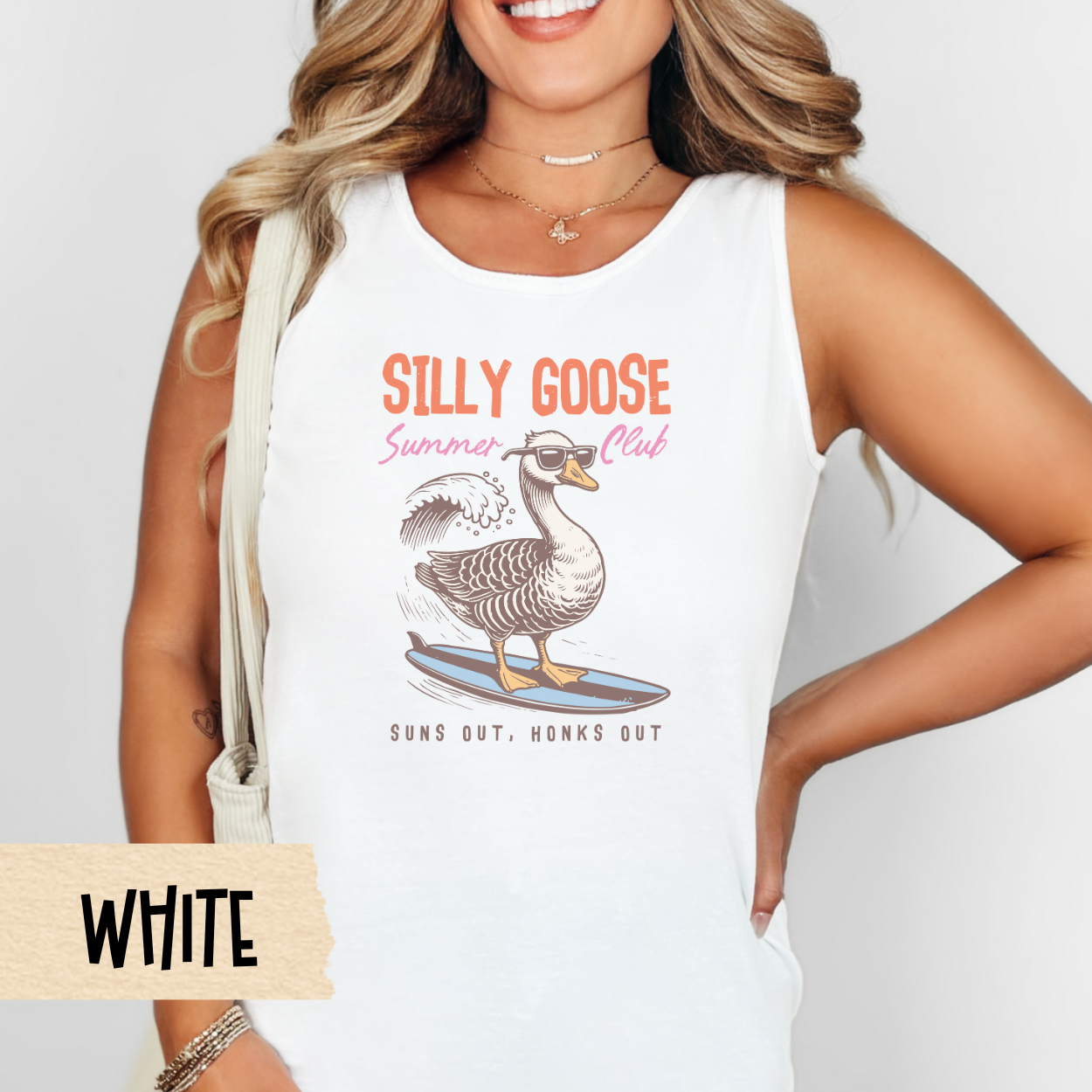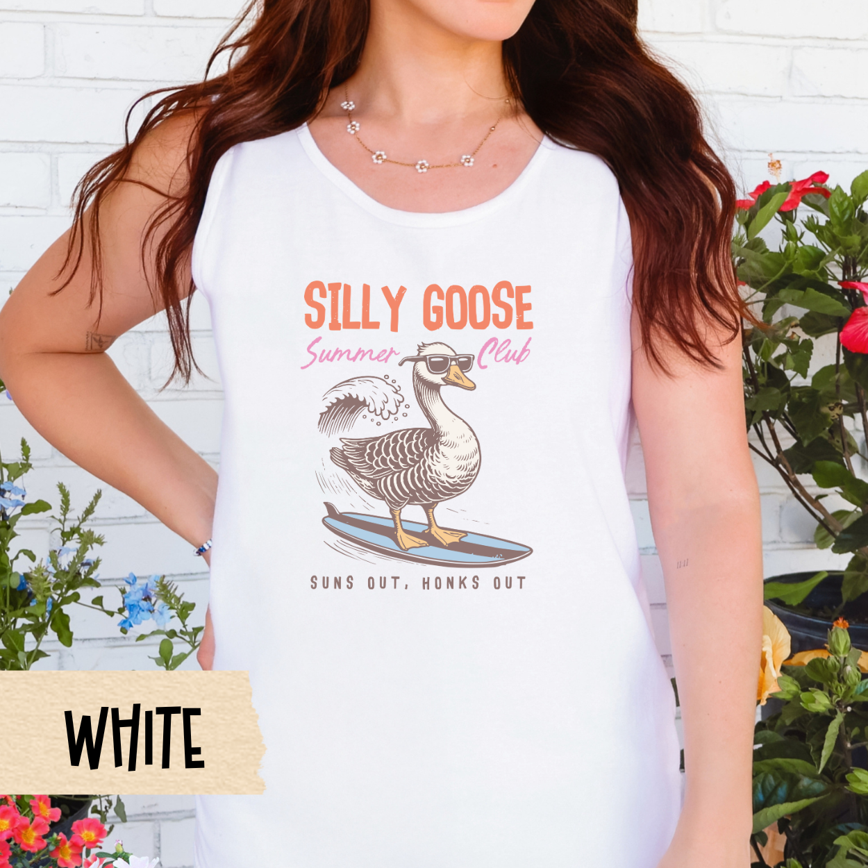 Funny Summer Goose Shirt, Silly Goose Club Tank, Suns Out Honks Out Graphic Tank Top, Cute Beach Shirt, Surfing Animal Shirt Gift