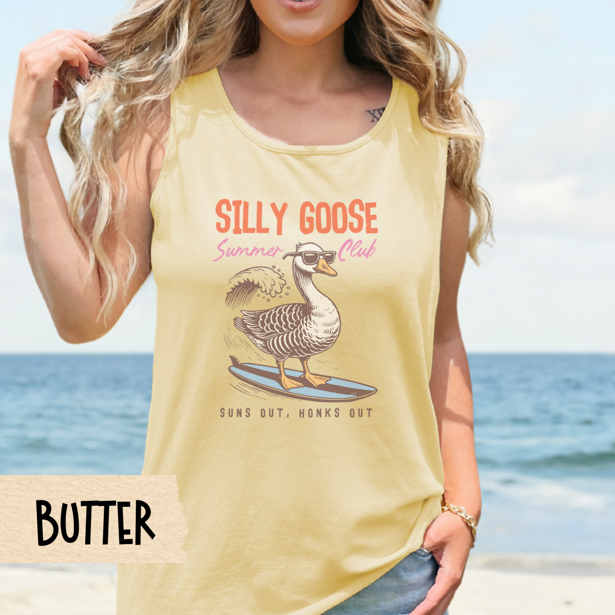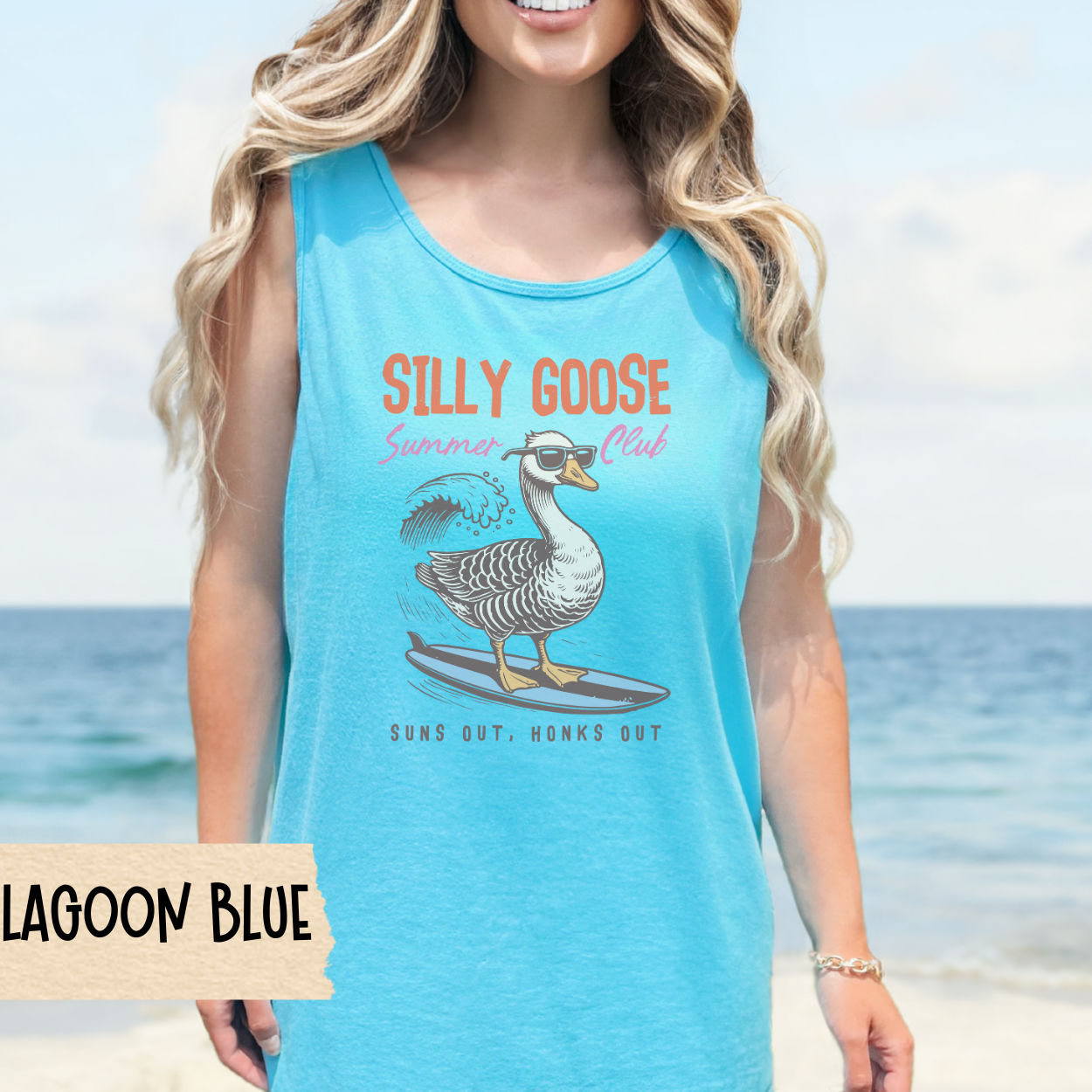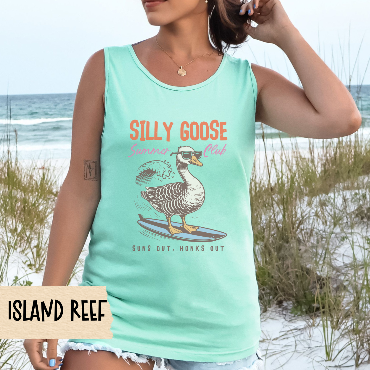 Funny Summer Goose Shirt, Silly Goose Club Tank, Suns Out Honks Out Graphic Tank Top, Cute Beach Shirt, Surfing Animal Shirt Gift