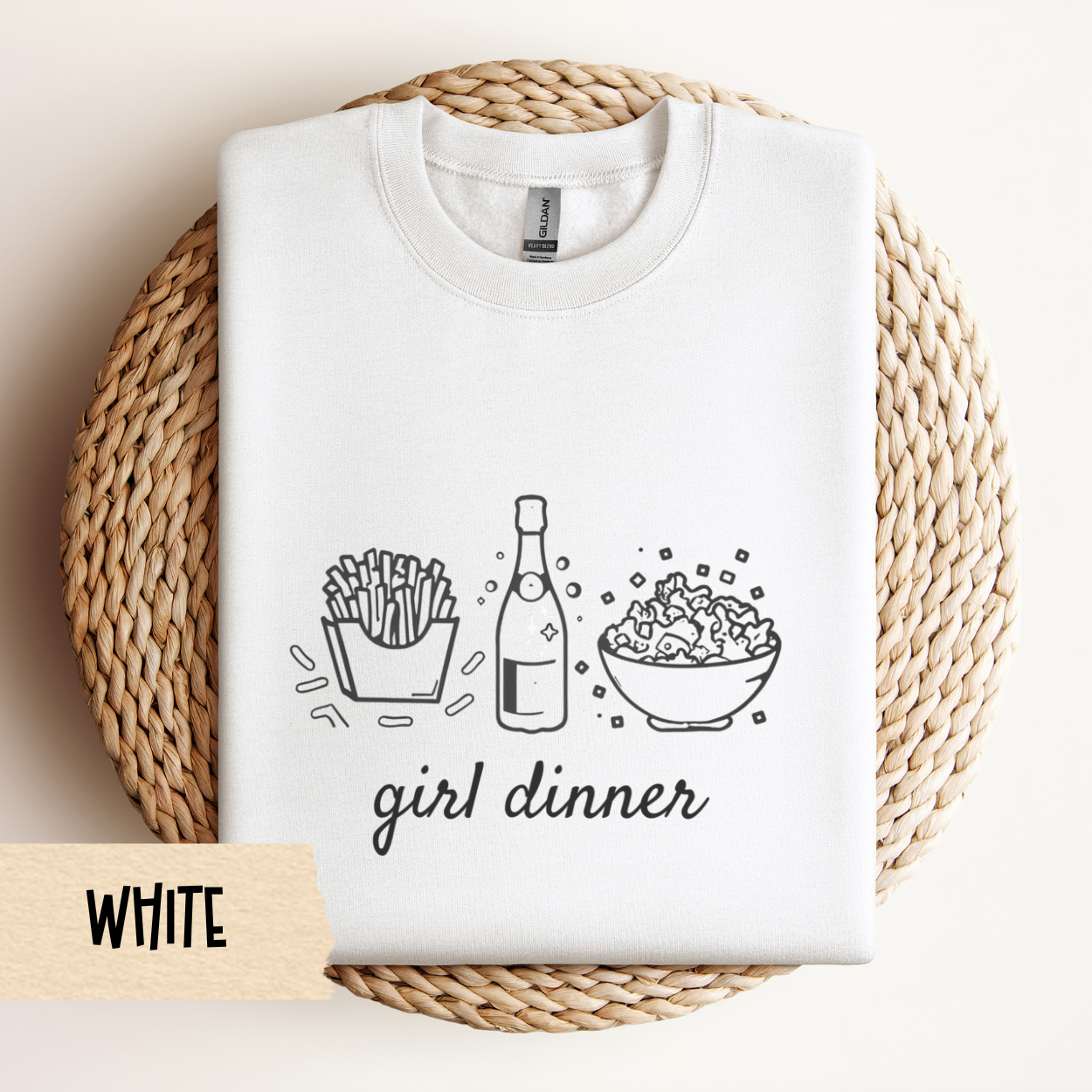Calling all snack queens and foodie girls—this Girl Dinner sweatshirt is for you!