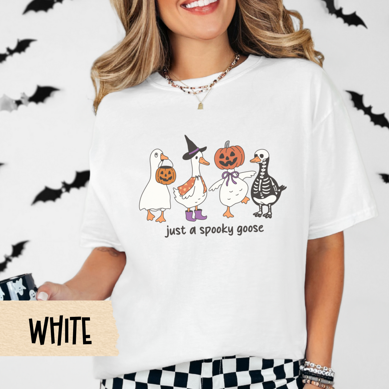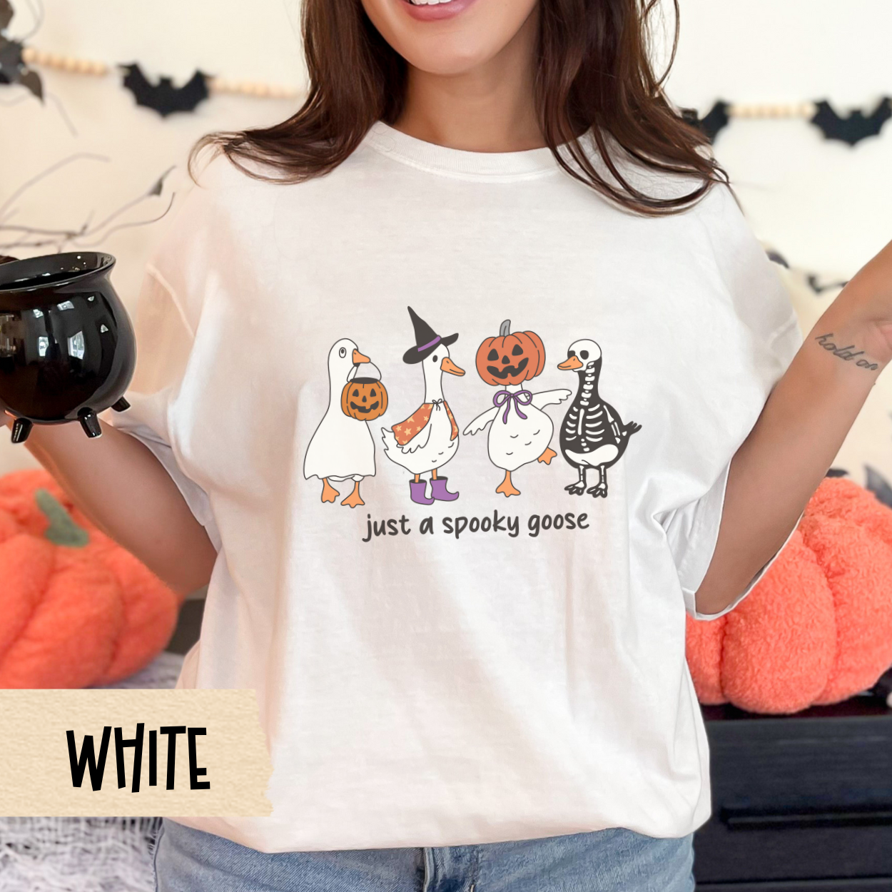 Halloween Tee for Her, Just a Spooky Goose Shirt, Funny Goose Costume T-Shirt, Comfort Colors Fall Tee, Cute Halloween Animal Graphic Top