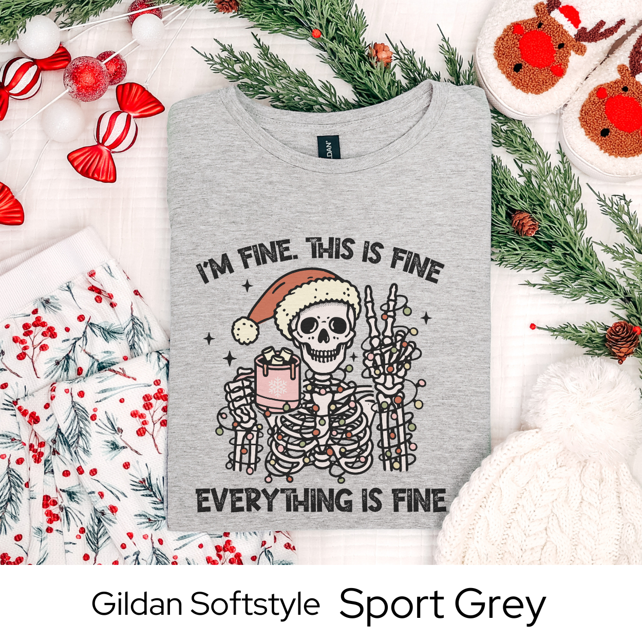 Im Fine Skeleton Christmas Shirt, Funny Holiday Graphic Tee for Men Women Teens, Spooky Xmas Party Outfit, Alternative Gift Idea