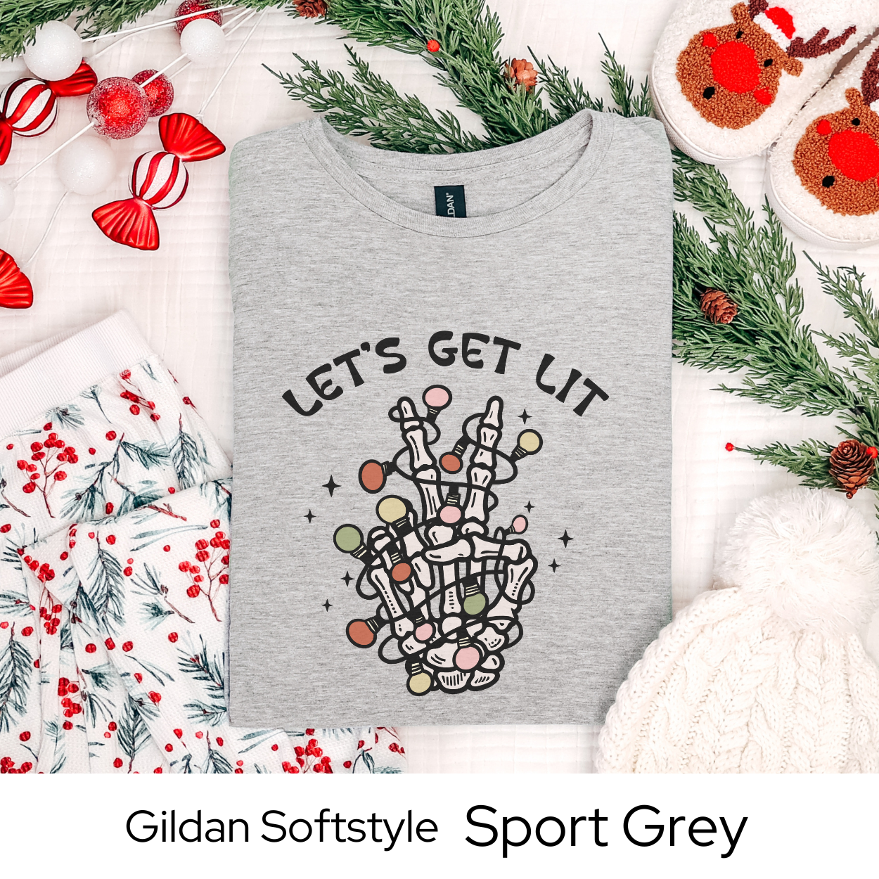 Lets Get Lit Skeleton Shirt, Funny Christmas Graphic Tee for Men Women Teens, Spooky Holiday Party Outfit, Unique Xmas Gift Idea