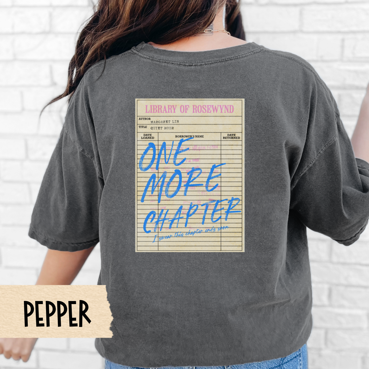 This cozy book-themed shirt is perfect for readers who can’t resist “just one more chapter.” Featuring a nostalgic library card design on the back and a cute book doodle on the front, it blends literary charm with a clean, modern aesthetic.