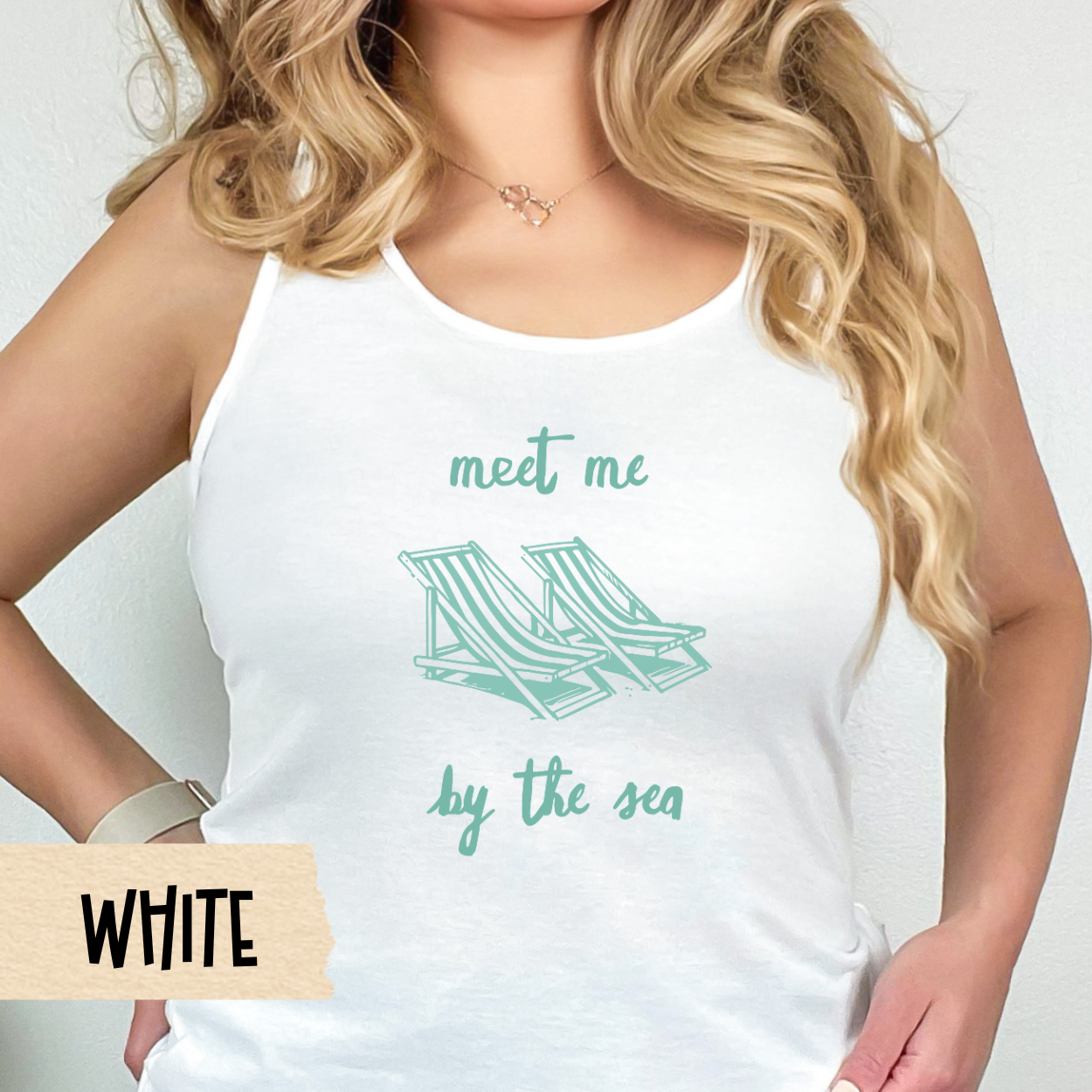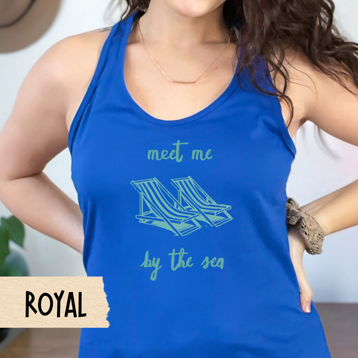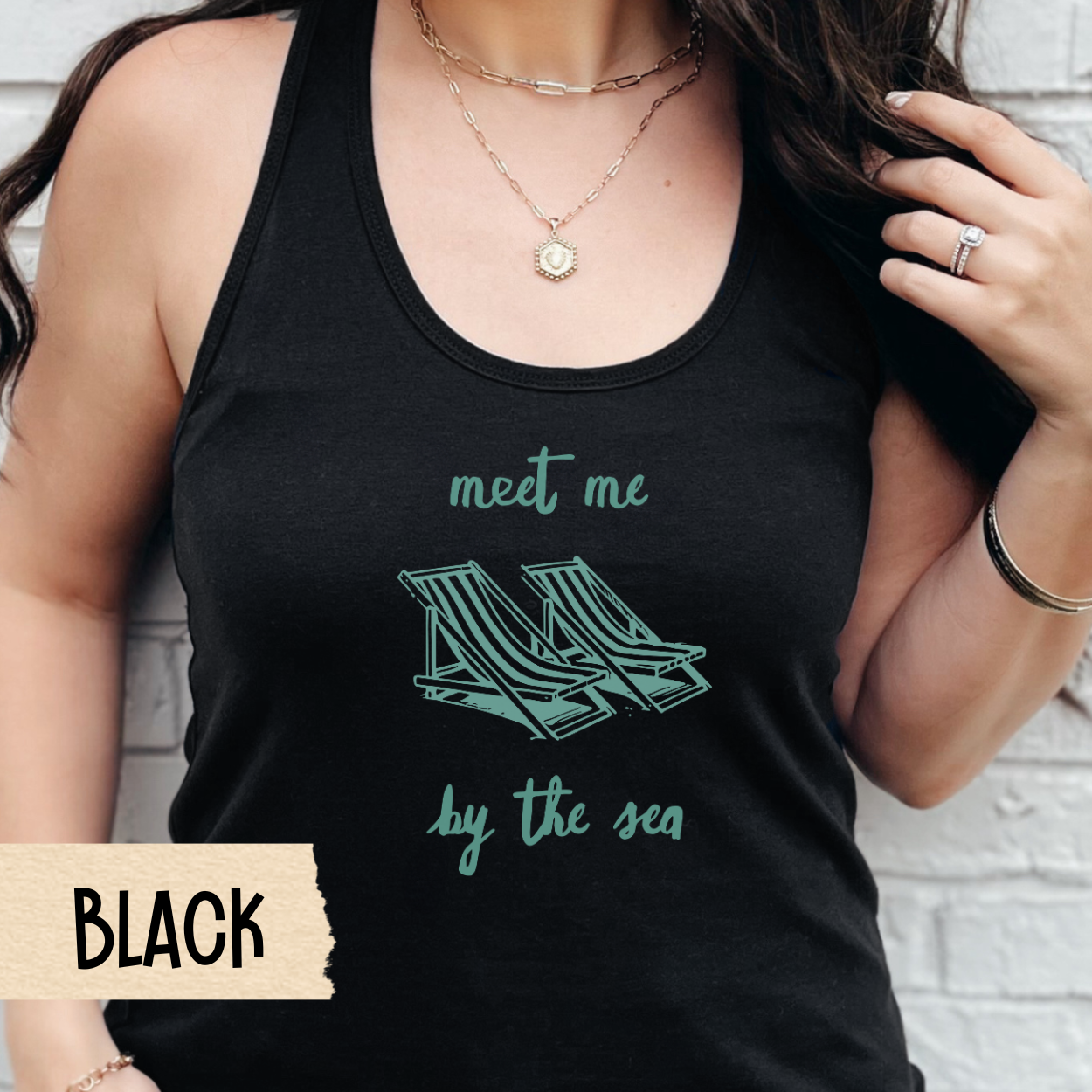 Meet Me by the Sea Tank, Beach Vacation Shirt, Coastal Racerback, Summer Tank, Ocean Lover Shirt, Relaxed Beachwear, Cute Travel Tank