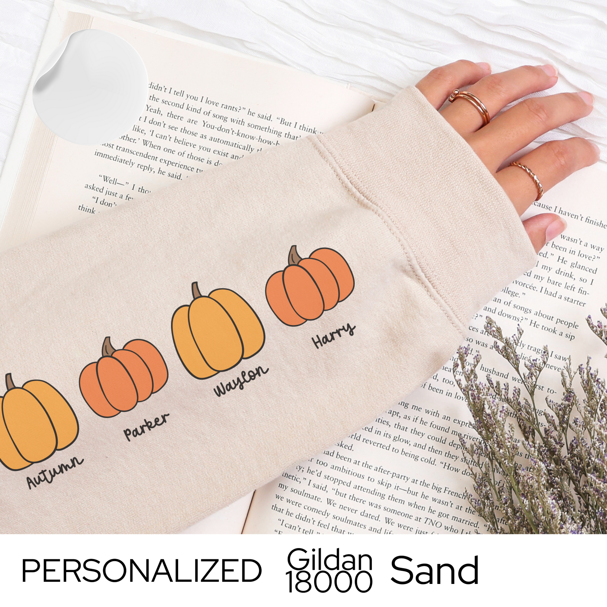 Personalized sleeve design: Each pumpkin is labeled with your grandchildrenās names, in the order you provide