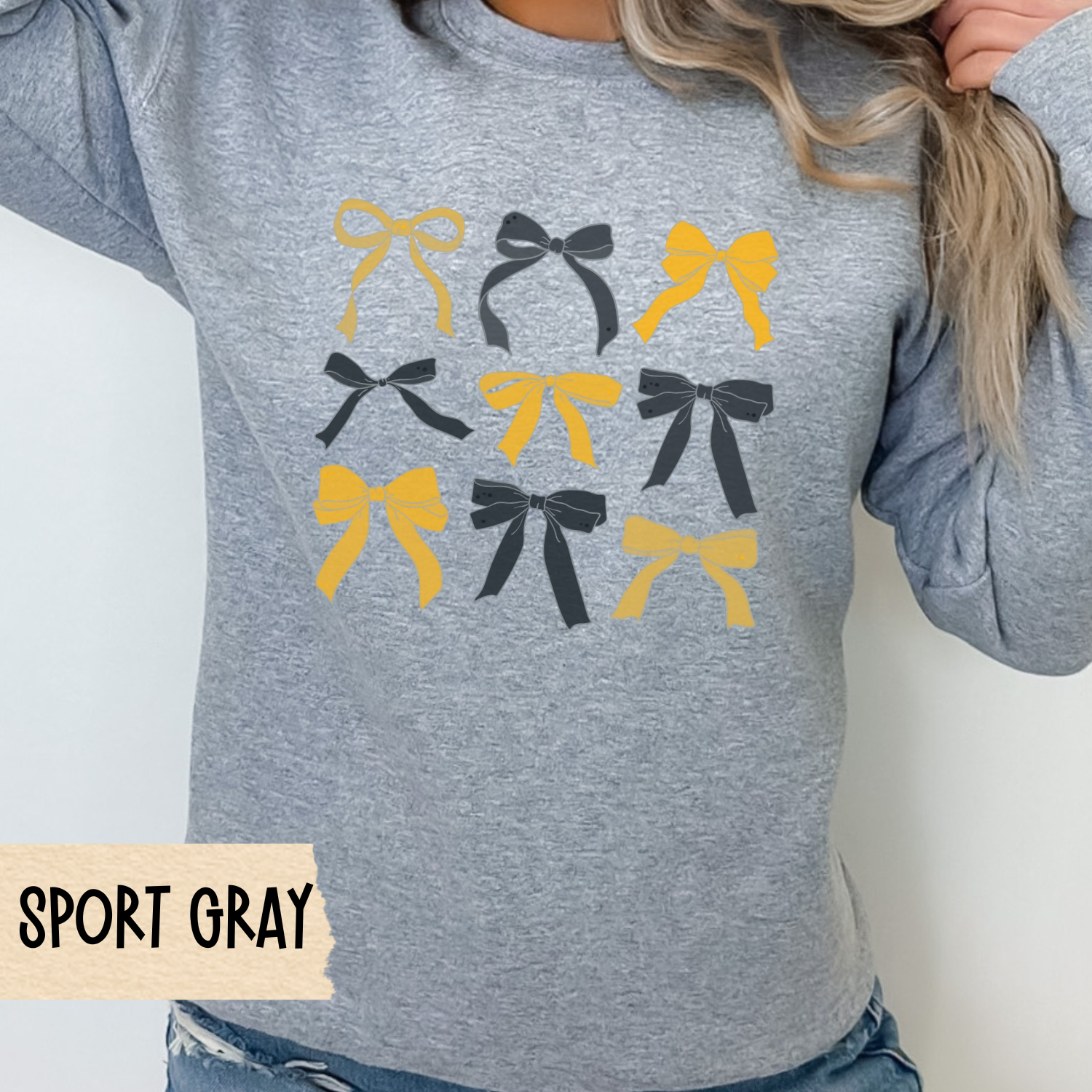 Pittsburgh Football Sweatshirt, Black and Gold Crewneck, Coquette Bows