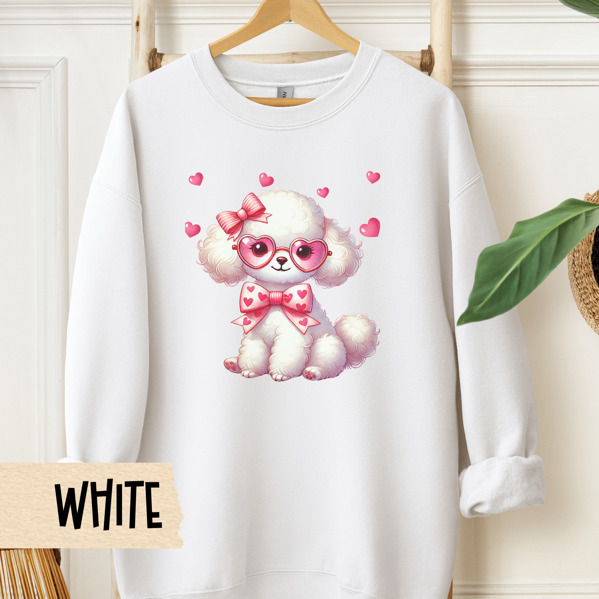 This Poodle Sweatshirt is a perfect Valentine crewneck for dog lovers. The cute poodle design gives off a cozy and charming vibe, making it a great addition to your wardrobe. It is relevant for dog lovers, Valentine's Day celebrations, and casual everyday wear.
