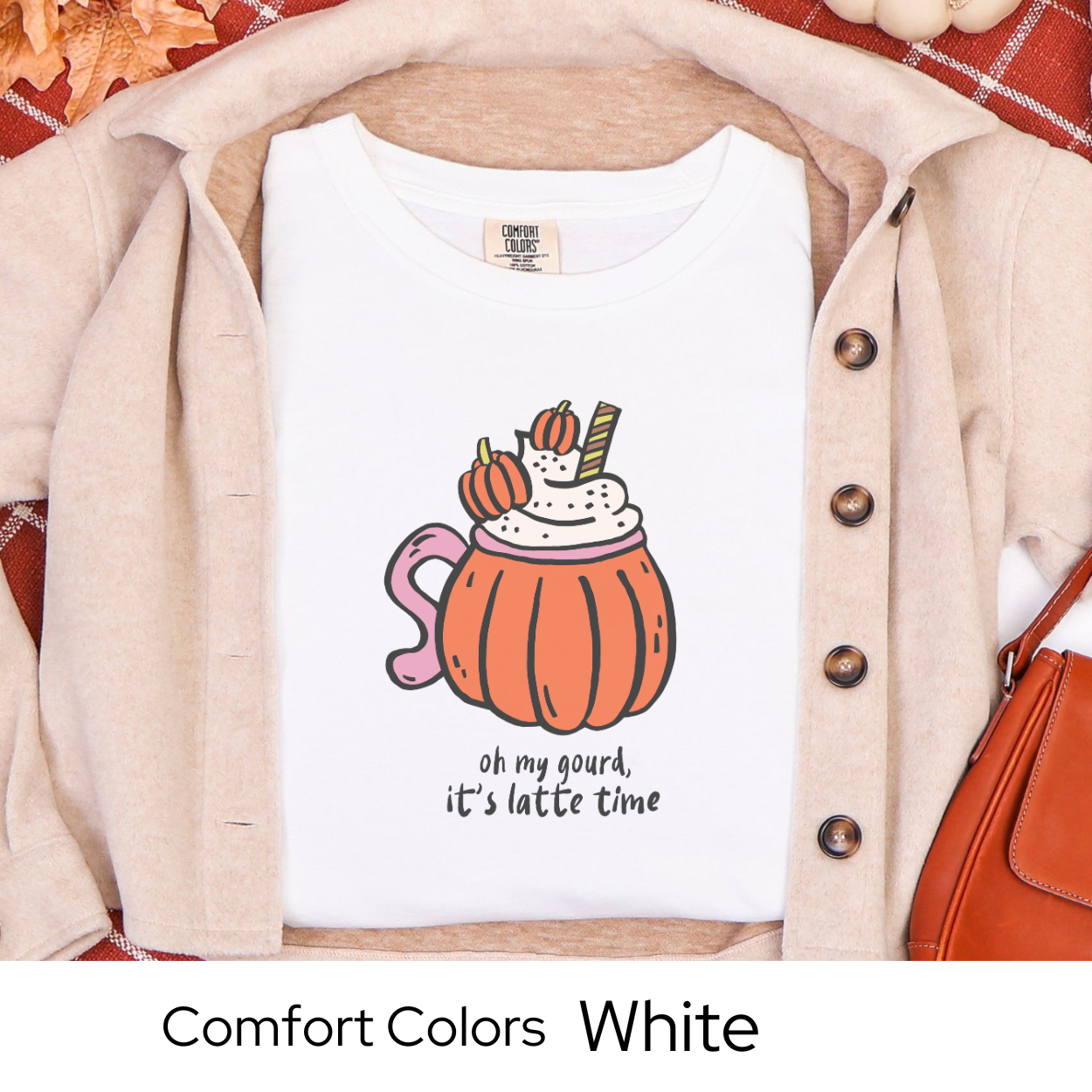 Pumpkin Shirt, Fall Coffee Lover Tee, Cozy Latte Graphic Shirt, White Comfort Colors, Cute Autumn Outfit, Pumpkin Spice Gift